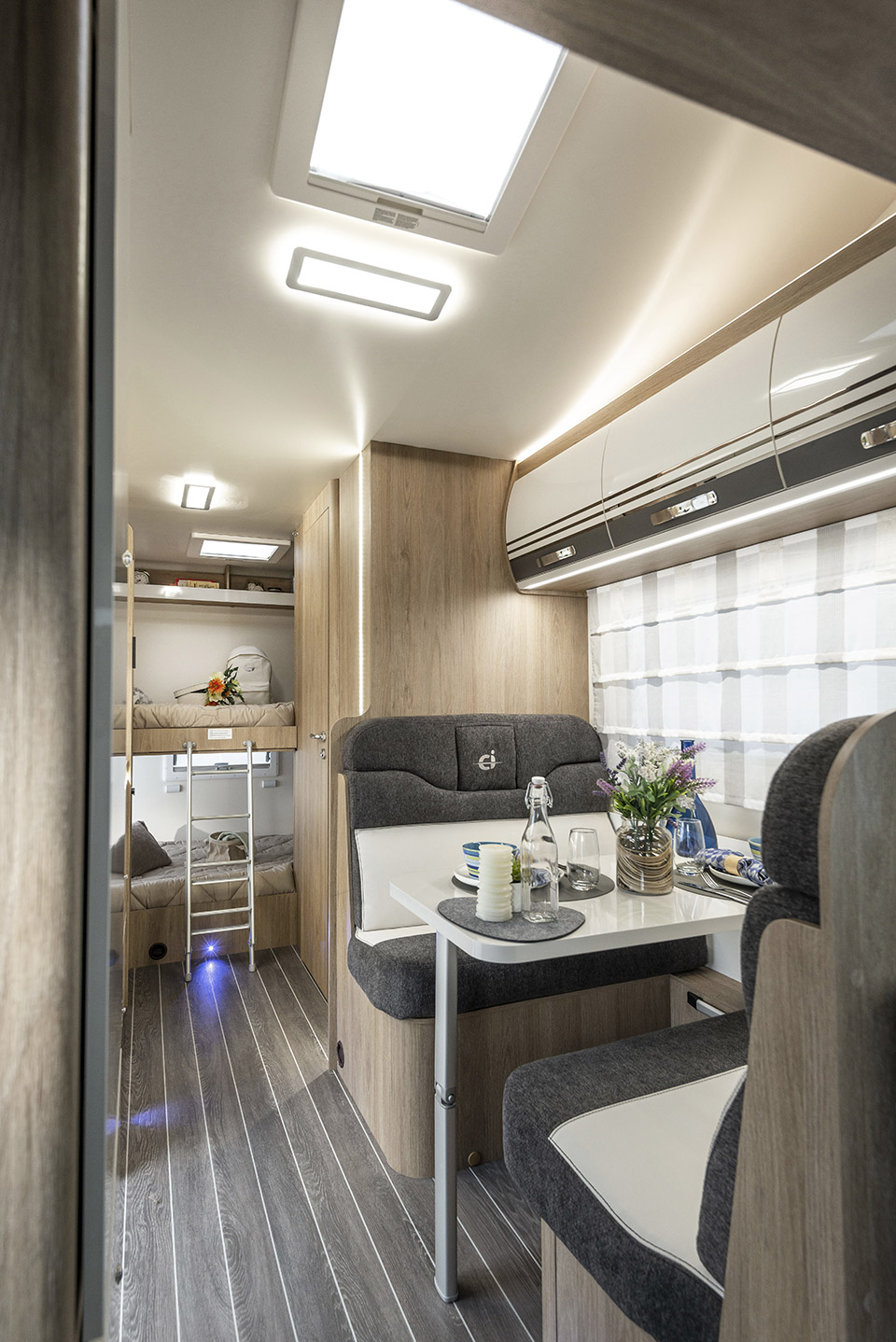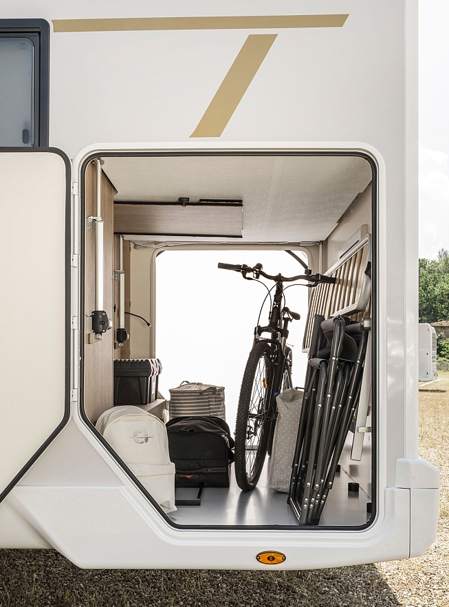 Garage, Gasherd, Maxi Kühlschrank, Heizung, Boiler, Dusche und chemisches WC, Außenbeleuchtung, Mückengitter, DAB-Radio, Stromkabel, 2 Gasflaschen, Markise, Rückfahrkamera, Gasgrill, Radträger.